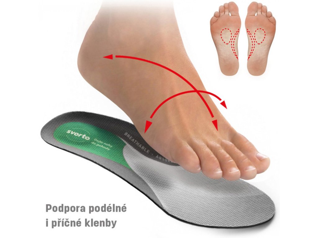 Hlavním přínosem vložek s podporou podélné a příčné klenby je, že pomáhají rovnoměrně rozložit tlak a váhu na plochu chodidla, odlehčují přetěžovaným místům, zajišťují lepší stabilitu při chůzi a vyrovnávají postavení chodidel. Správná poloha chodidel je důležitá pro správné držení celého těla.