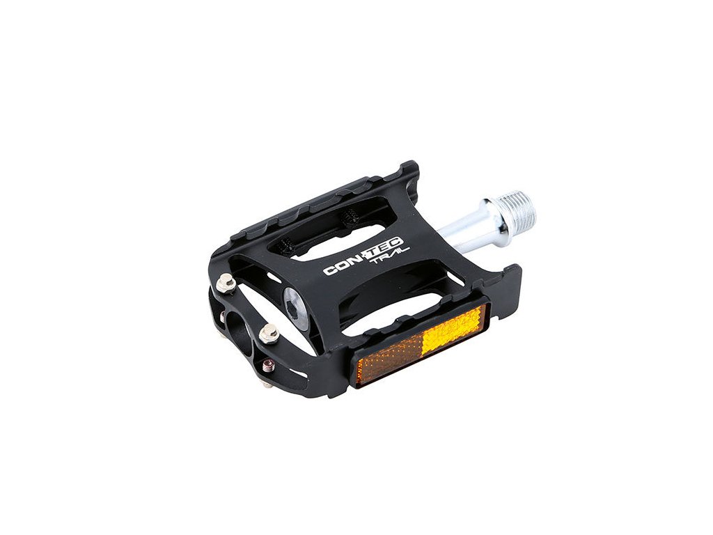 Při jízdě v nerovném terénu na horském nebo gravel kole jsou priority jasné: Nekompromisní stabilita a bezpečnost s co nejmenší hmotností. S CONTEC MTB pedálem „Trail“ byly tyto požadavky obratně splněny. Hliníkové tělo a klec jsou vyrobeny z jednoho odlitku a jsou opatřeny výměnnými čepy z vysokopevnostní CrMo oceli a uchopovacím profilem. To zajišťuje bezpečný postoj v každé situaci.