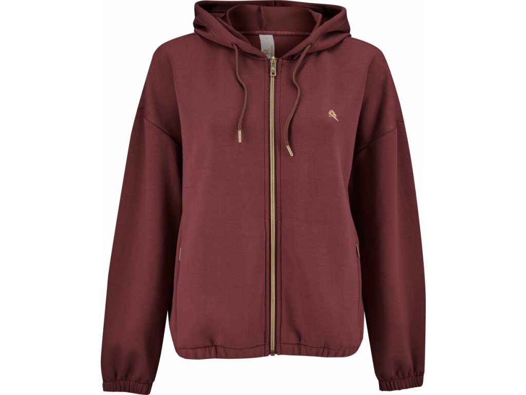 Moderní design, maximální komfort: mikina Clara je vyrobena z příjemného materiálu (58 % viskóza, 36 % polyamid, 6 % elastan), který dokonale kopíruje křivky těla a poskytuje svobodu pohybu. Praktická kapuce s nastavitelnou šňůrkou a stylově snížená ramena dodávají sportovní, ležérní vzhled. Boční kapsy na zip nabízí bezpečný úložný prostor pro nezbytnosti. Regular fit volný střih zajišťuje pohodlí během každodenního nošení – ideální pro městský život nebo domácí pohodu.Pružné lemy rukávů s všitou gumičkou.