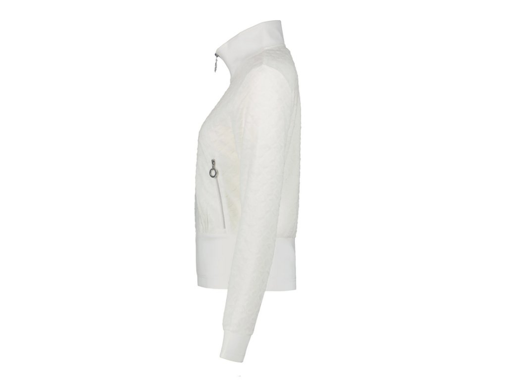 Dámská střední vrstva Luhta. Dvě kapsy na zip vpředu. Přední zip. Ozdobný zip vpředu. Vzorované po celém obvodu. Štítek s logem.