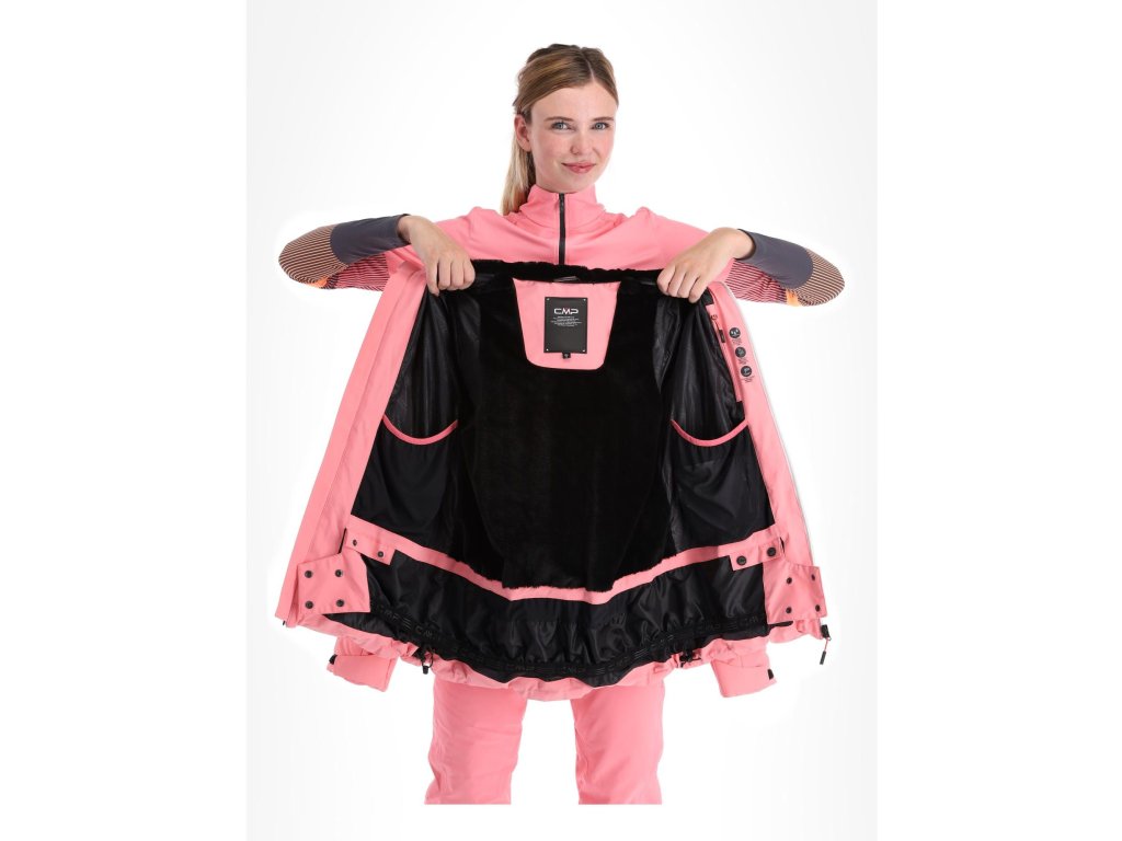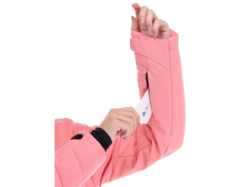 Oděv doplňují boční kapsy na zip a kapsa na skipas na paži, stahovací šňůrka pro přizpůsobení střihu a odnímatelná kapuce.