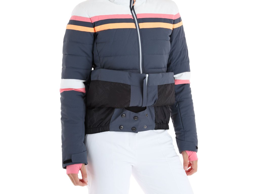 Tato lyžařská bunda nabízí bezpečnou ochranu před živly.