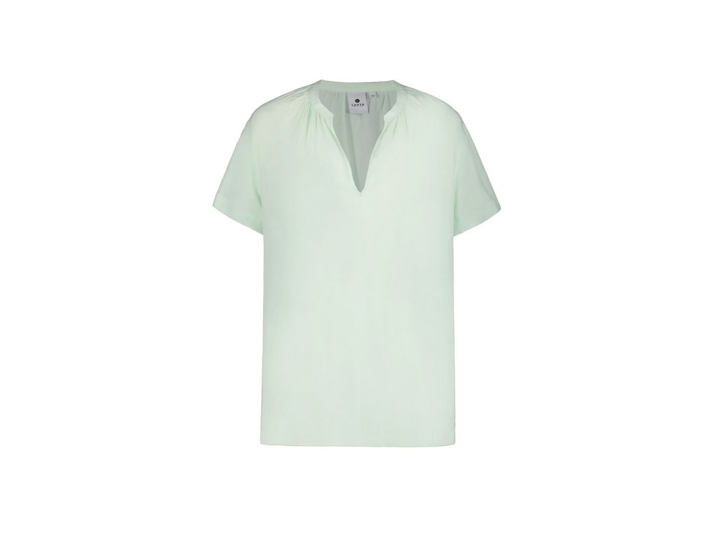 Dámské tričko Luhta. Volný střih. Krátký rukáv. Výstřih do V. Tvarovaný lem. Štítek s logem. Obnovitelná surovina materiálu pochází z udržitelné produkce. Obsahuje viskózová vlákna LENZING™ ECOVERO™, která jsou vyrobena z certifikovaných obnovitelných zdrojů dřeva v ekologicky šetrném výrobním procesu.
