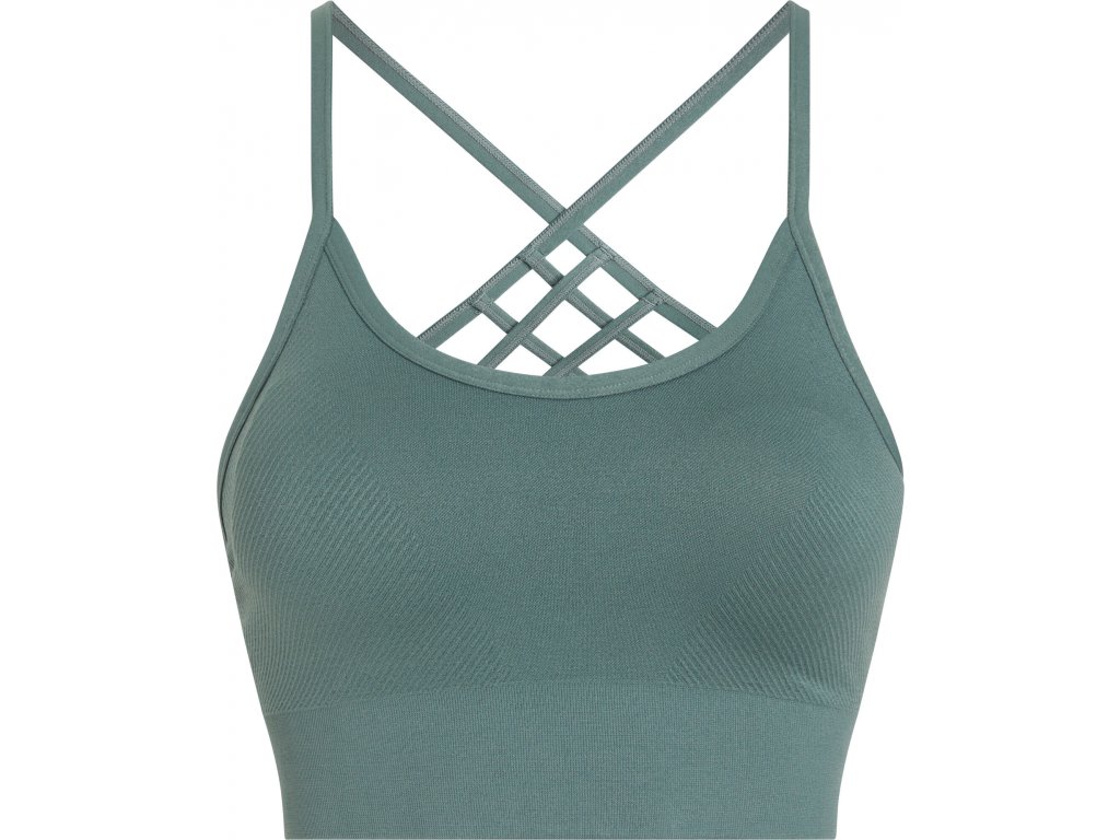 Bezešvá a pružná sportovní podprsenka Olla je vyrobena ze směsi strečového materiálu vyrobeného z 67 % recyklovaného polyamidu. Je vybavena vyjímatelnými vycpávkami a technologií Dry Plus® pro ochranu a pohodlí při pohybu.