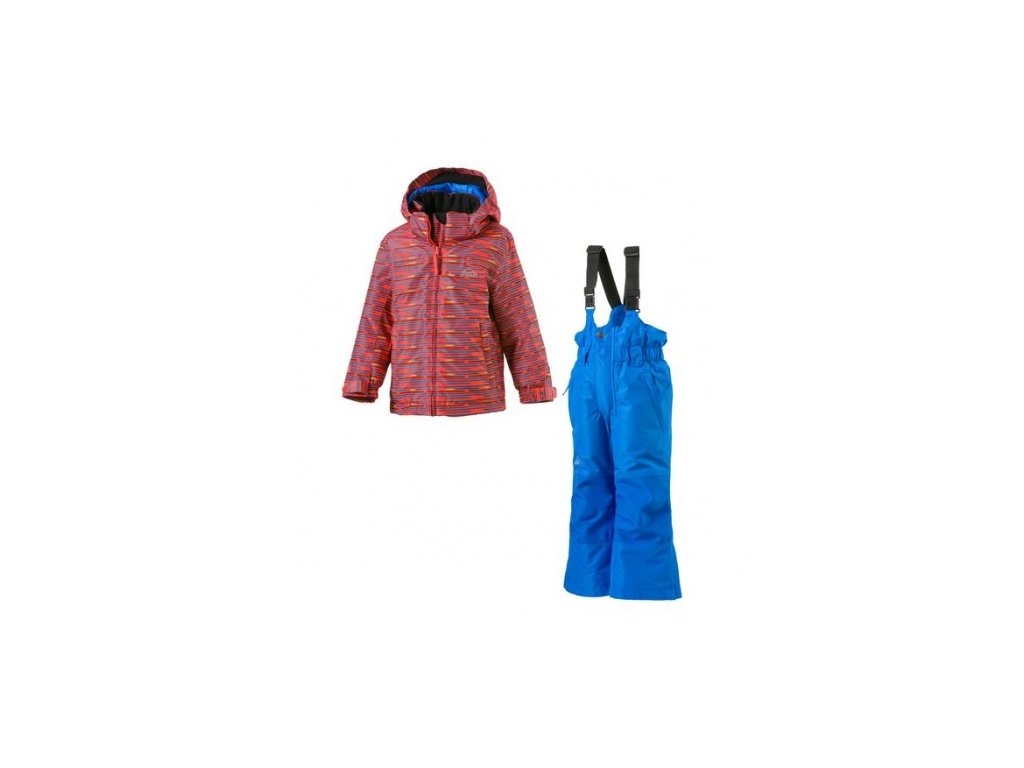 Komplet se skládá z lyžařské bundy a lyžařských kalhot. Odolný proti větru a vodě, přesto dokonale prodyšný a hřejivý pro perfektní den na svazích či při hrách na sněhu, děti vždy zůstanou v teple a suchu. Lepené švy zajišťují vodotěsnost i vzduchotěsnost a zvyšují pevnost a životnost oděvu. Vysoký límec s počesanou jemnou textilií uvnitř a odepínací kapuce s pružným lemem udrží krk v teple. Krytka zipu v horní části poskytuje ochranu bradě proti odření. Nastavitelné manžety na rukávech i stahovací spodní lem bundy. Ochranný pás proti vniknutí sněhu v bundě i ve vnitřní dolní části nohavic. Zipy na nohavicích pro snadné obutí lyžařské obuvi. Vnější kapsy na bundě i kalhotách na zip. Vyztužená kolena a zadní sedací část zvyšují odolnost kalhot. Plně elastický pas poskytuje větší pohodlí a svobodu pohybu. Elastické nastavitelné šle uchycené na zvýšeném pasu drží kalhoty na svém místě. Reflexní prvky pro bezpečnější pohyb venku.