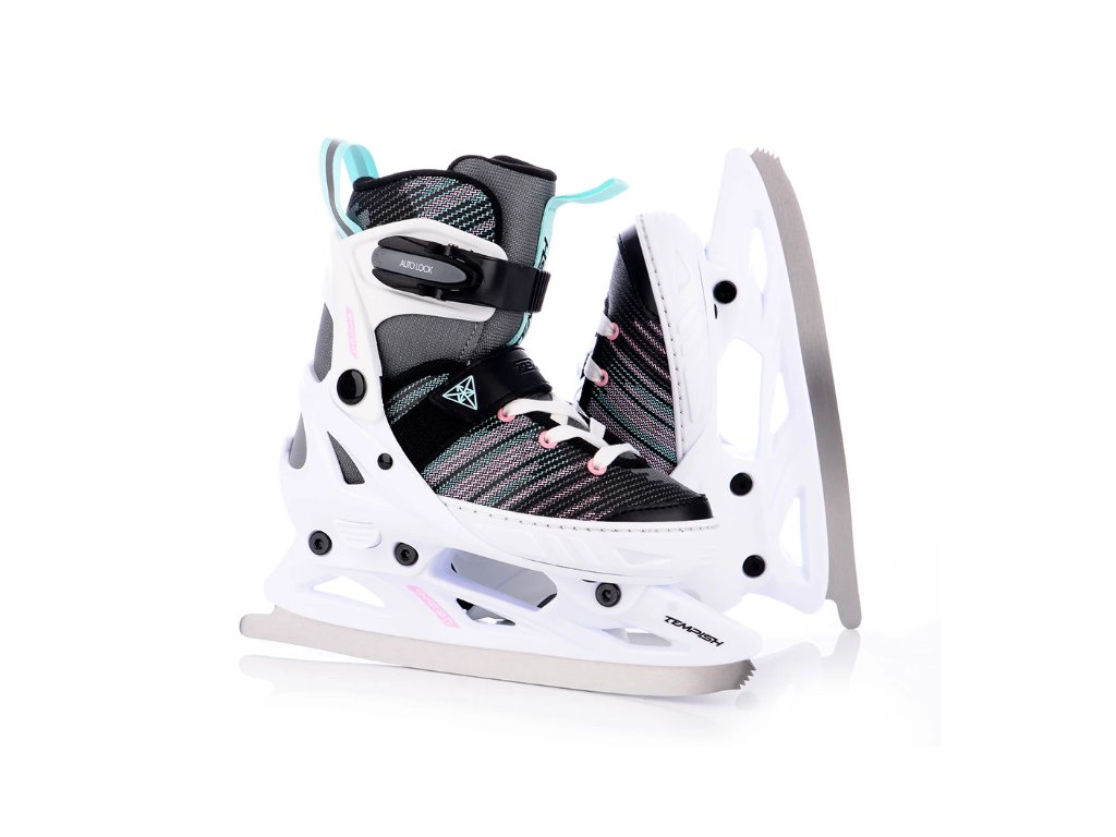 Dětské roztahovací lední brusle s nastavitelnou velikostí, anatomickou výstelkou a reflexními prvky pro bezpečné a pohodlné bruslení.