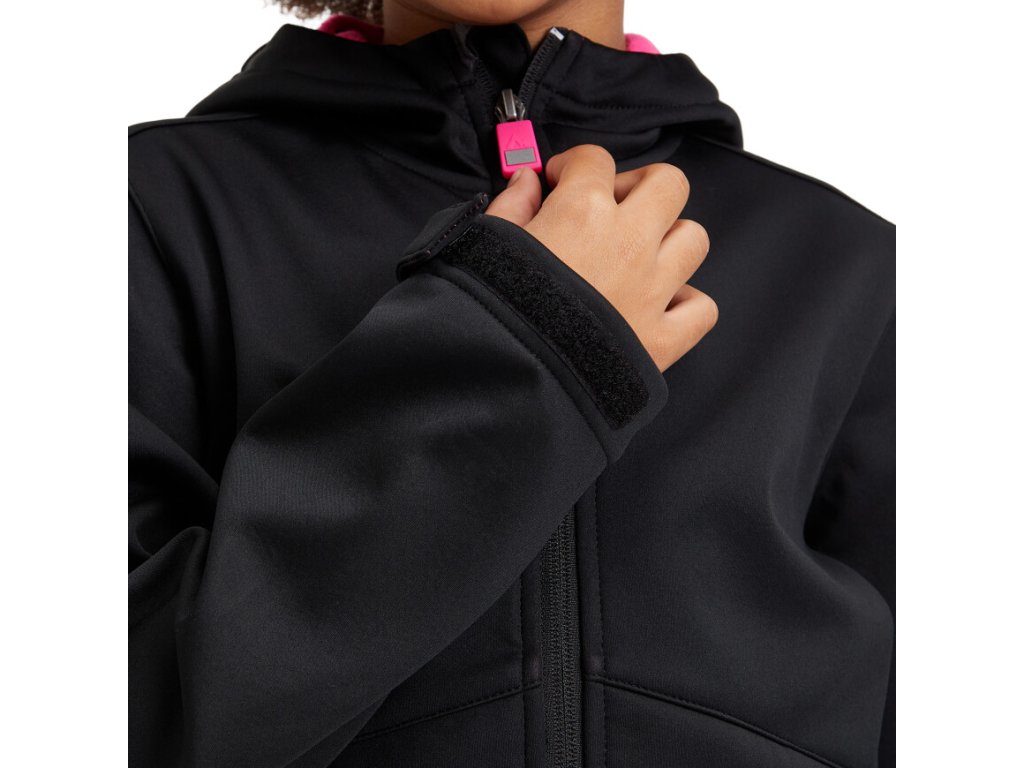 Má také kartáčovaný vnitřní materiál, pevnou kapuci, nastavitelný lem a manžety pro udržení tepla.