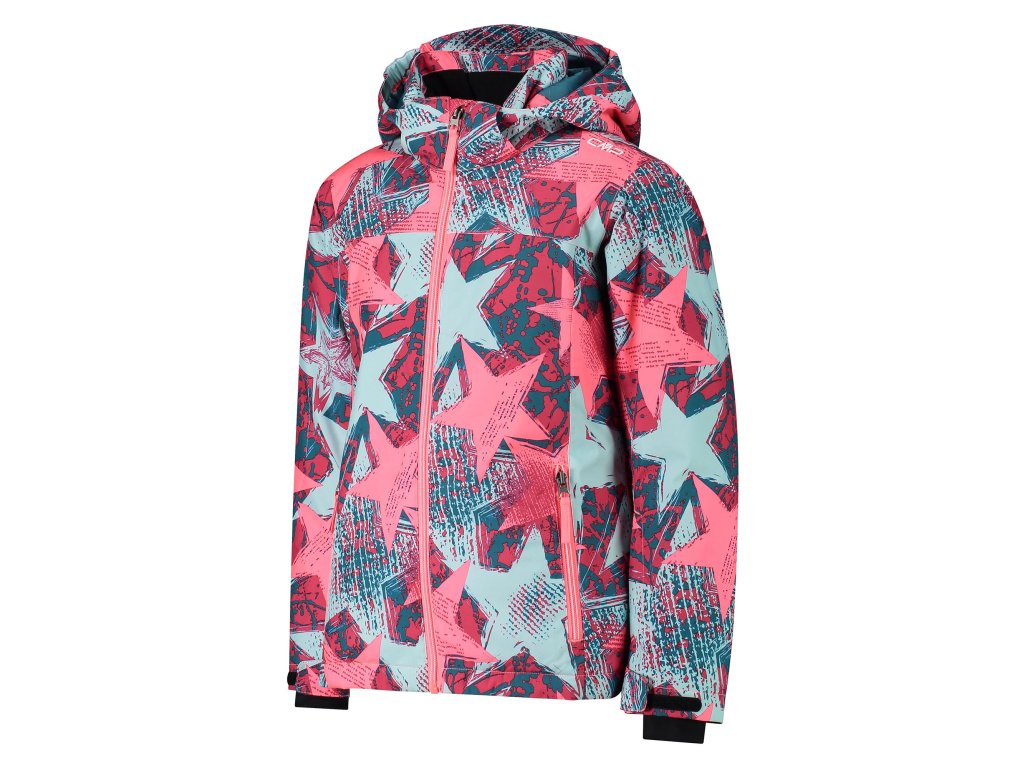 Dívčí lyžařská bunda s celoplošným potiskem. Plně podlepené švy a voděodolná membrána Clima Protec, které zajišťují nepromokavost a prodyšnost i při nejintenzivnějším lyžování. Odepínací kapuce, dvě boční kapsy na zip a přední zip s vnitřní větruodolnou klopou.
