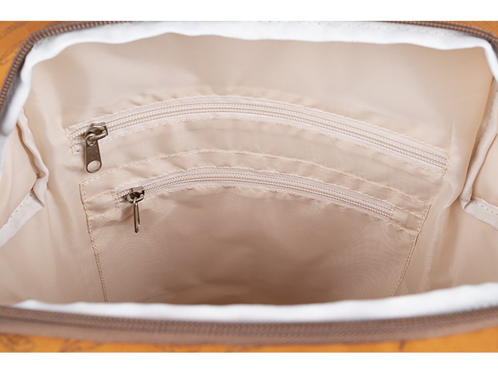 Elegantní dámský batoh do města Loap REINA s vrchním plněním, objemem 15 litrů a nosností 7 kilogramů. Má polstrovaná záda, dno i kapsu na notebook až do velikosti 15"". Hlavní komora je na zip, vpředu i na straně zad je další kapsa na zip. Uvnitř jsou celkem dvě kapsy (polstrovaná kapsa na notebook, a ještě jedna kapsa na zip). Kromě klasických nastavitelných ramenních popruhů má delší držadla na přenášení v ruce, která se dají spojit přezkou. Batoh s decentním potiskem vznášejících se lístků je vyrobený ze 100% polyesteru. Díky tomu je lehký, nenasává vodu, skvěle schne, odolává skvrnám a snadno se udržuje.Stylový design. Polstrovaná kapsa na notebook (pro zařízení o velikosti 15". ). Otevírání na zip. Polstrované dno. 2 vnější kapsy, 2 vnitřní kapsy