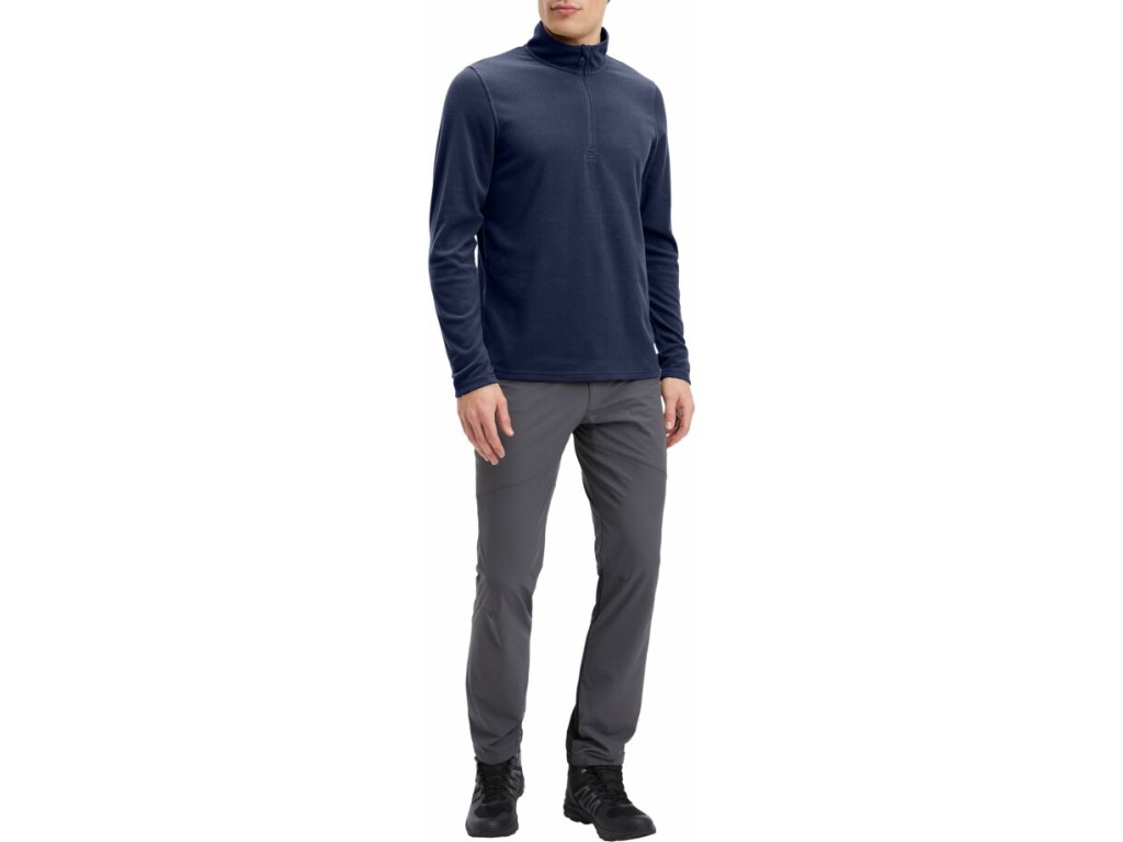 Fleecová mikina s dlouhým rukávem je perfektní izolační vrstvou pro lyžování a zimní sporty. Má poloviční zip a zaoblené boční švy pro pohodlný střih. Vyvýšený límec nabízí ochranu před větrem a sněhem.