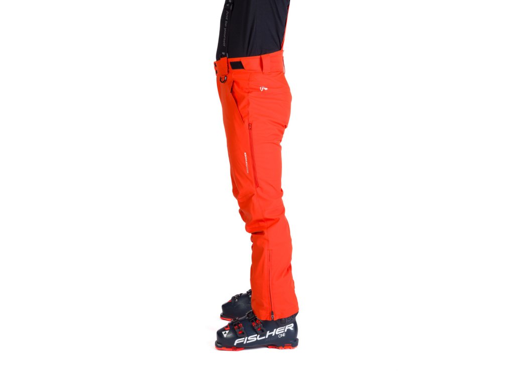 Pánské lyžařské kalhoty jsou určeny pro sjezdové lyžování. Kalhoty jsou vyrobeny z dvouvrstvého materiálu s parametry vodního sloupce a prodyšnosti 10 000 mm H₂O / 10 000 g/m²/24 h, díky čemuž odolají vodě i větru při zachování dobré prodyšnosti. Povrch materiálu je opatřen ekologickou vodoodpudivou úpravou bez použití PFC látek. Kritické švy na kalhotách jsou podlepeny. Kalhoty disponují dvěma předními kapsami na zip a jednou zadní kapsou na zip. Předtvarovaná kolena, rozzipovatelný spodek kalhot pro snadné obouvání a obsluhování lyžařských bot a zipové ventilační otvory zajišťují optimální komfort nošení. Vysoce elastický pas v zadní části podporuje dobrou mobilitu. Odnímatelné kšandy a vnitřní kamaše s gripem po celém obvodu drží kalhoty na místě. Posílené spodní části kalhot zvyšují odolnost, například proti rozseknutí lyží.