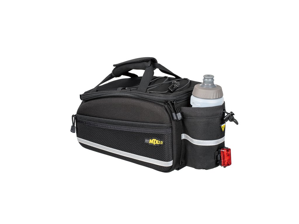 Novější, vylepšená verze oblíbených středně objemných cyklistických zavazadel pro systémovou řadu nosičů MTX QuickTrack 2.0. Vylepšení spočívá v nové upínací platformě systému MTX QuickTrack 2.0 (použitá u regálů Topeak TUBULAR, UNI, TETRA RACK), elegantnějším designu exteriéru, reflexních prvcích na napínacím lanku a elastické síťované kapse na horní straně zavazadla.